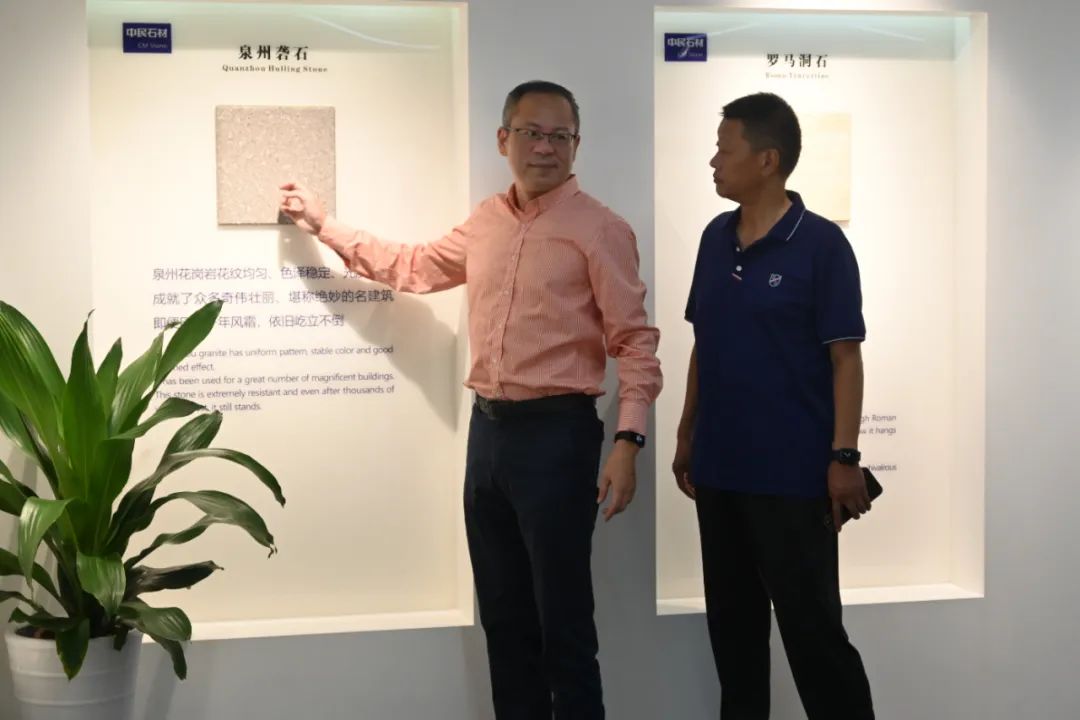 中民石材產(chǎn)業(yè)集團(tuán)董事長邱尚啟陪同易縣武永勝副縣長等一行先后參觀了中民石材沉浸式智能展廳、石材文化系列展示、海景創(chuàng)客設(shè)計(jì)師共享空間等。