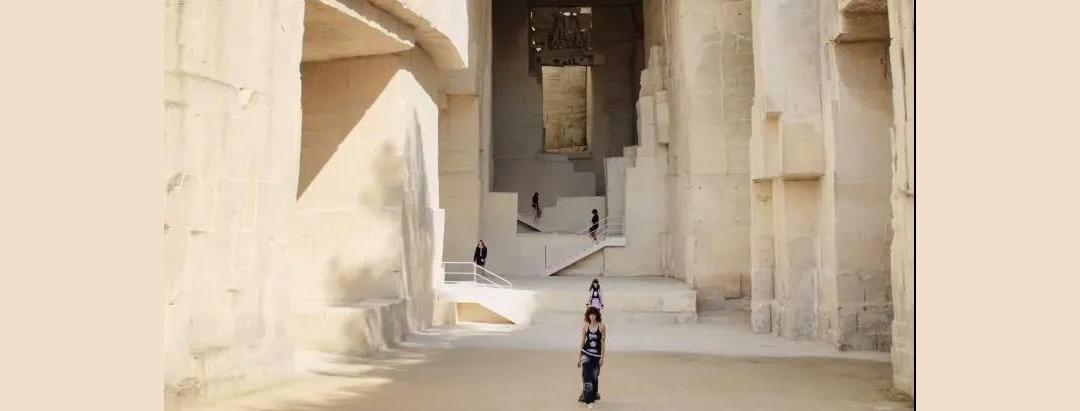 5月5日0點(diǎn),CHANEL 2022早春度假系列于法國(guó)南部普羅旺斯萊博村莊的光影采石場(chǎng)發(fā)布,創(chuàng)意總監(jiān) Virginie Viard 以香奈兒女士的摯友尚·考克多和他的電影《奧菲斯的遺囑》中采石場(chǎng)場(chǎng)景一幕為靈感打造全新系列。